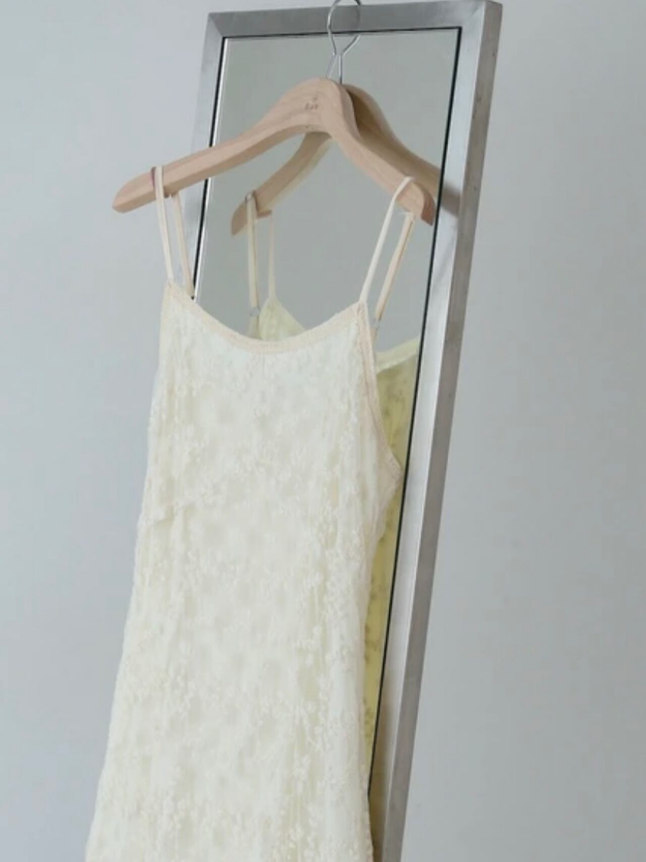 華奢な肩紐とすとんと落ちるシルエットが女性らしさを引き立ててくれ、しっかり裏地付きで安心して着用いただけます。
