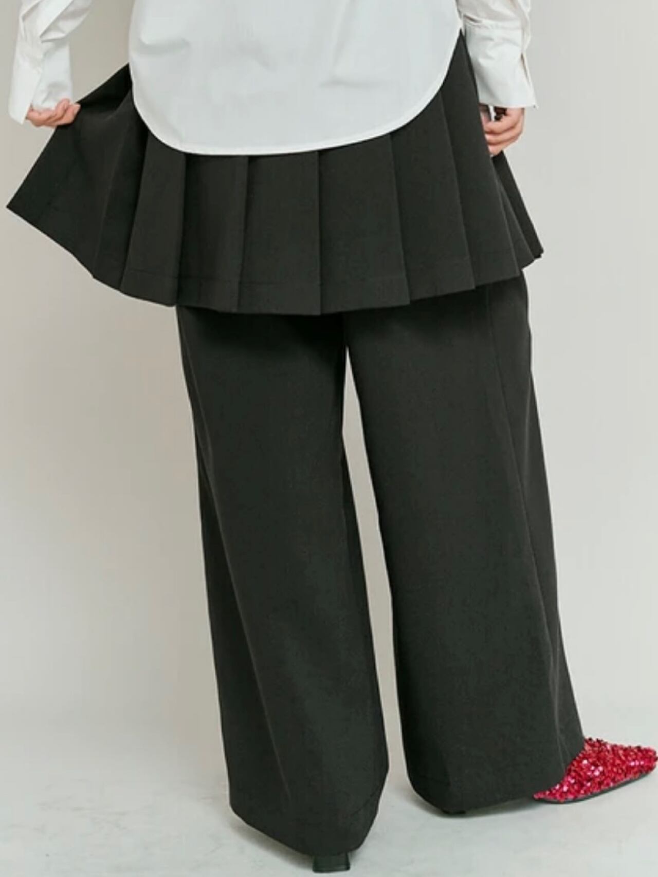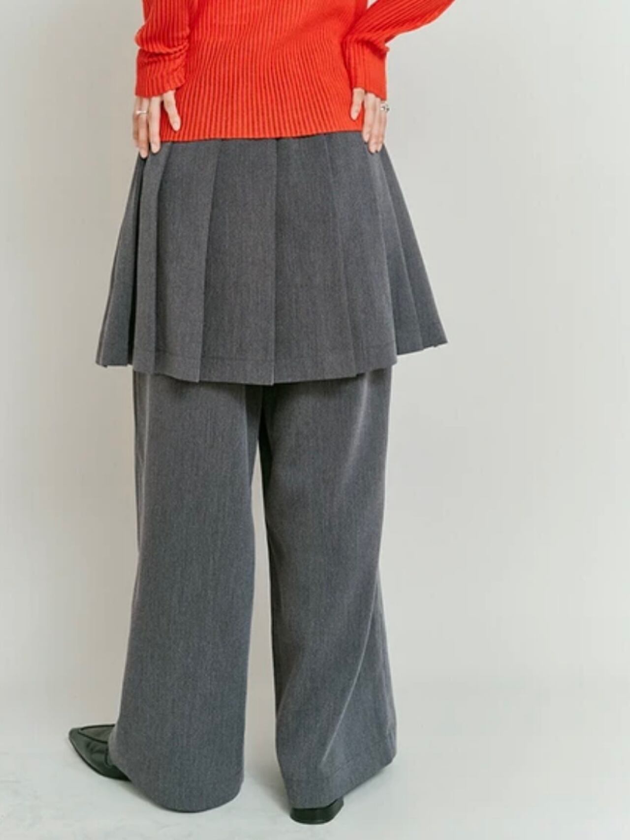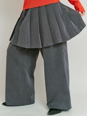 プリーツスカートとワイドパンツがドッキングしたトレンド感のあるボトムス。