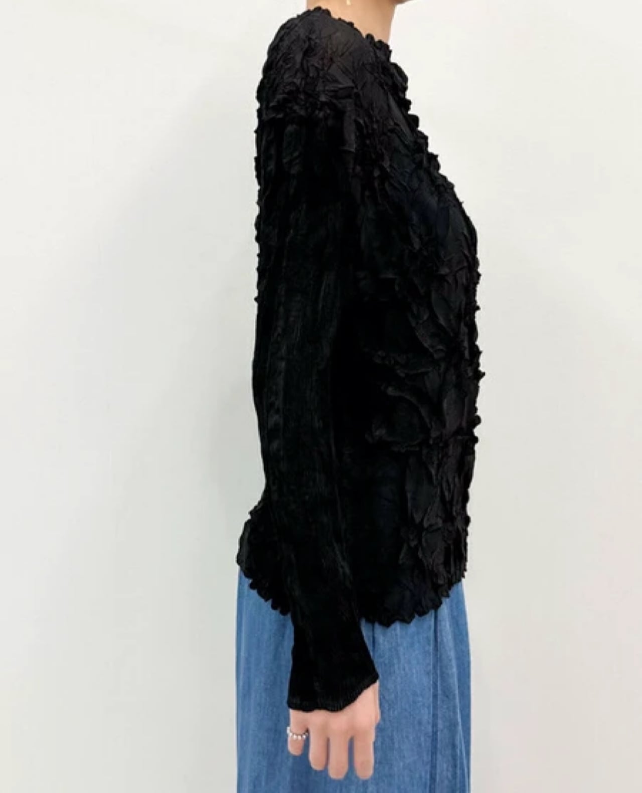 袖が少し長めに作られているのでレイヤード時には袖をチラ見せするスタイリングもおすすめです。