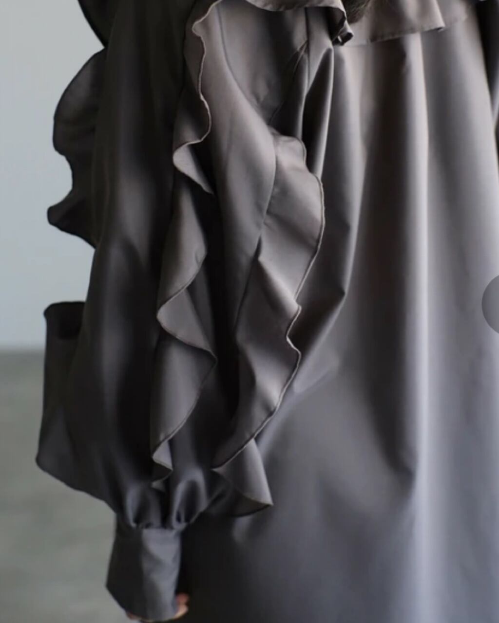 袖には縦にラッフルフリルを施し、動くたびに揺れる華やかなシルエットが◎
