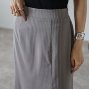 洗練されたレイヤードスタイルを演出する、ピンストライプスカート