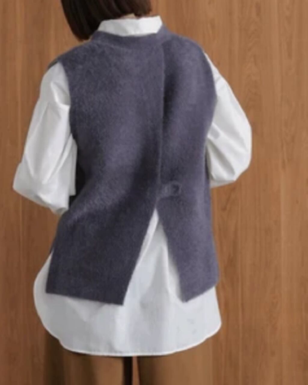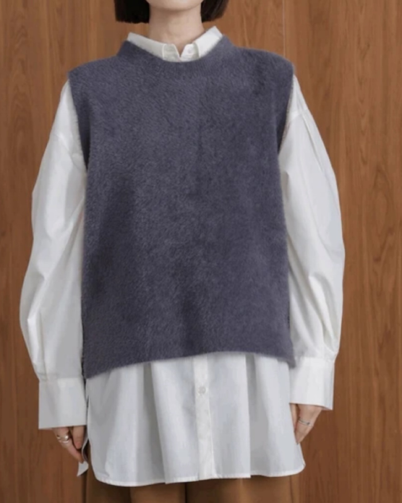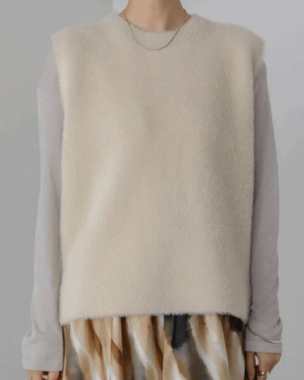 ふわふわとした毛足が心地よい、シャギー素材のベストです。