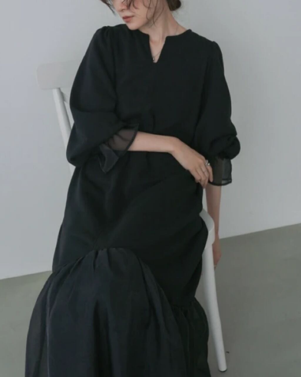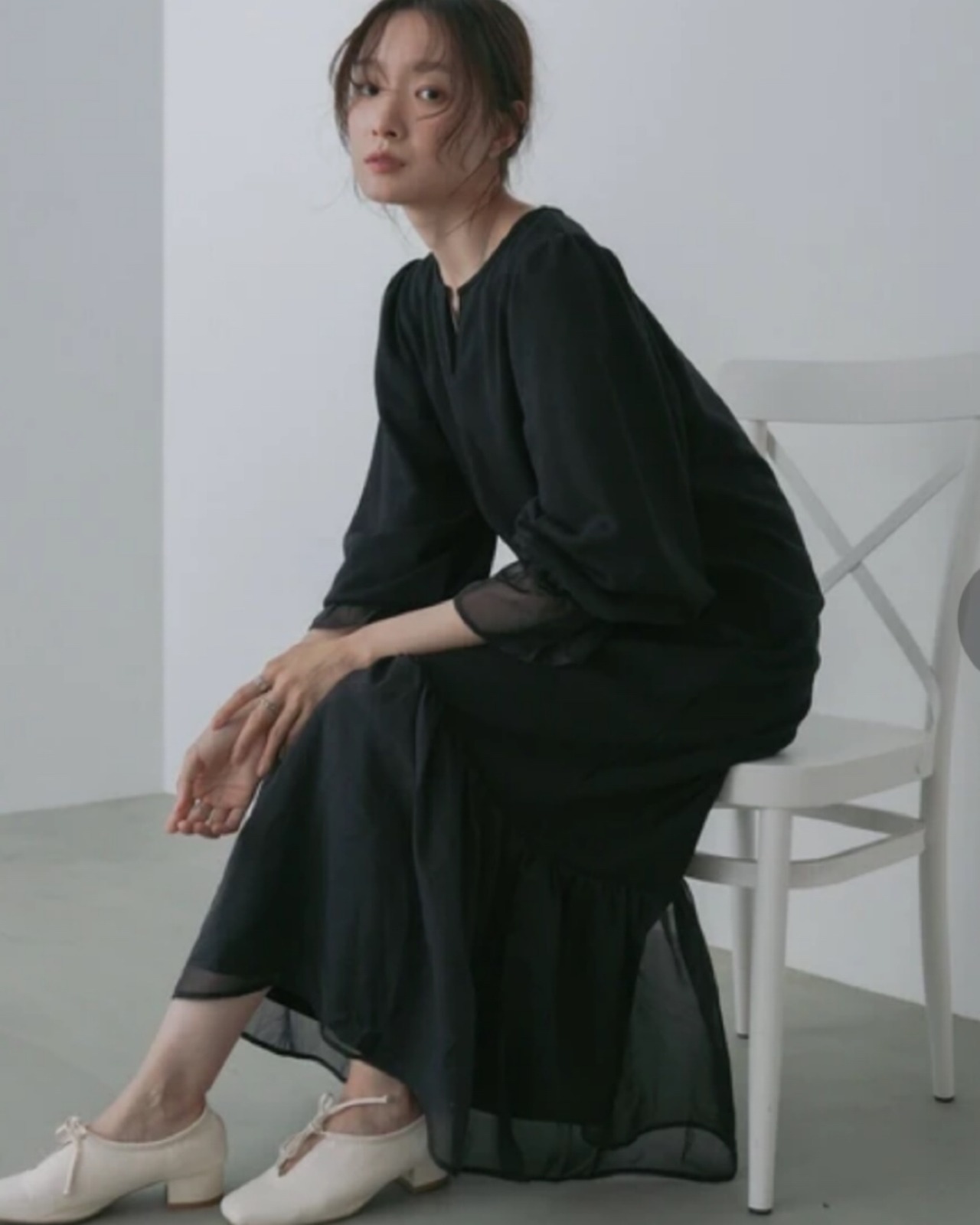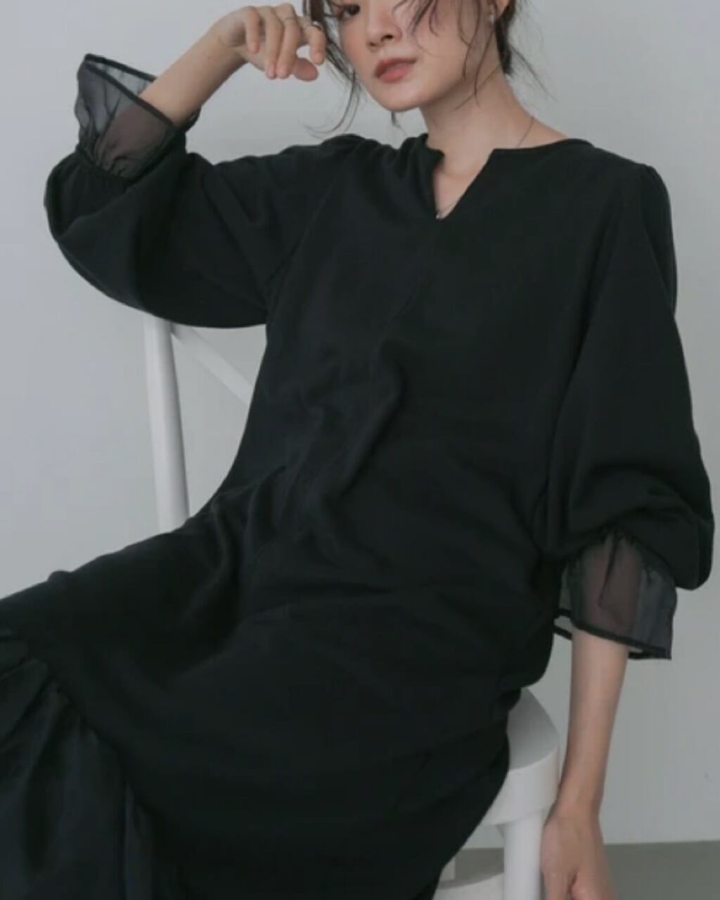 オケージョンにも日常使いにも使える万能ワンピースが秋冬仕様になって登場です!袖部分と裾部分がオーガンジーのレースでフェミニンな印象を与えてくれます。ワンピース本体はスウェット生地で着心地のいいワンピースですが、見た目はスウェットすぎない上品な生地感になっています。かっちりしすぎず、普段着にもなるので同窓会や二次会などにおすすめのアイテムです!