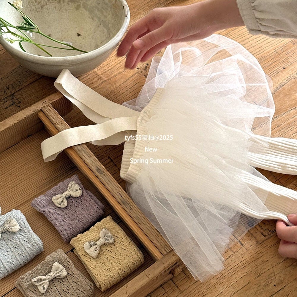 レギンスにチュールが付いたデザイン color ホワイト、グレー