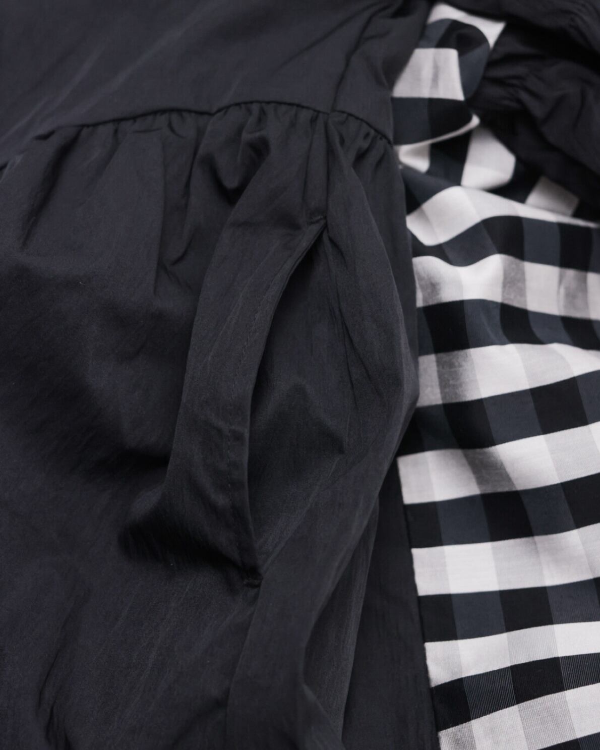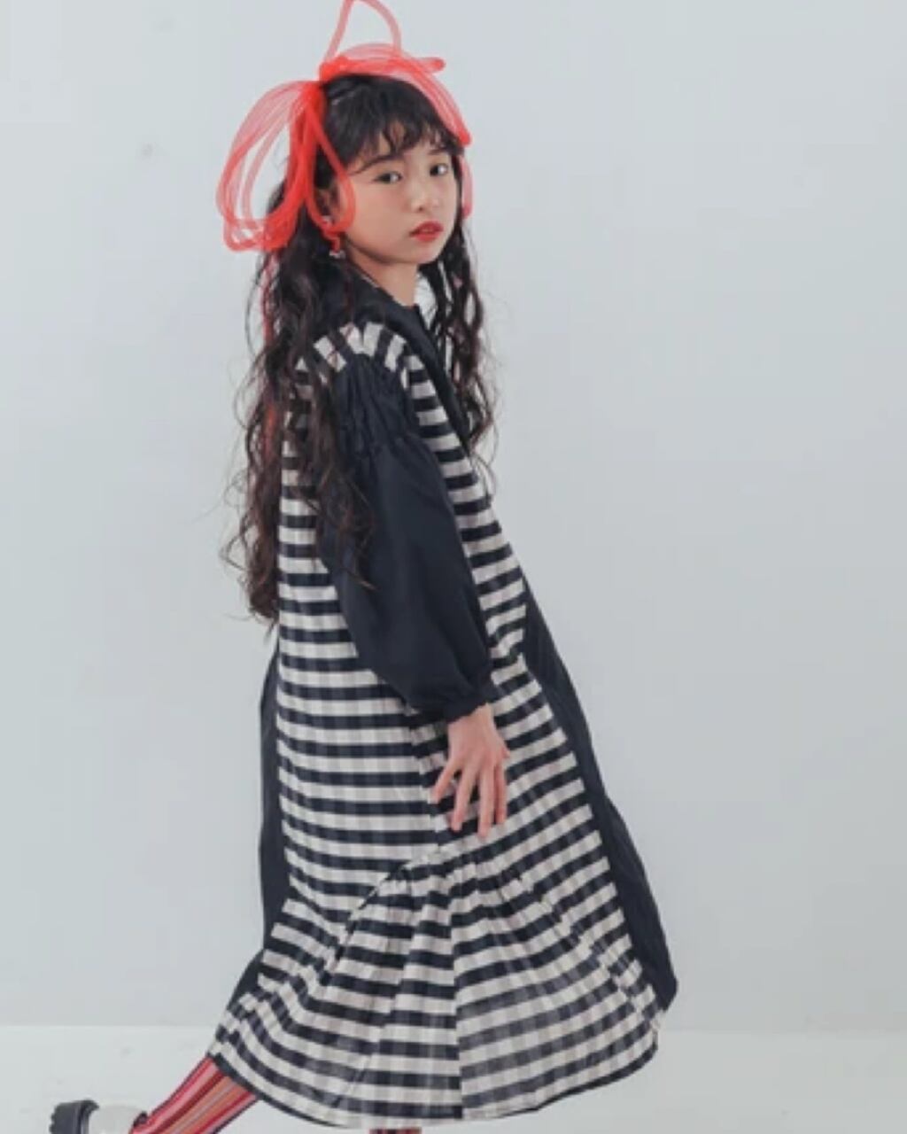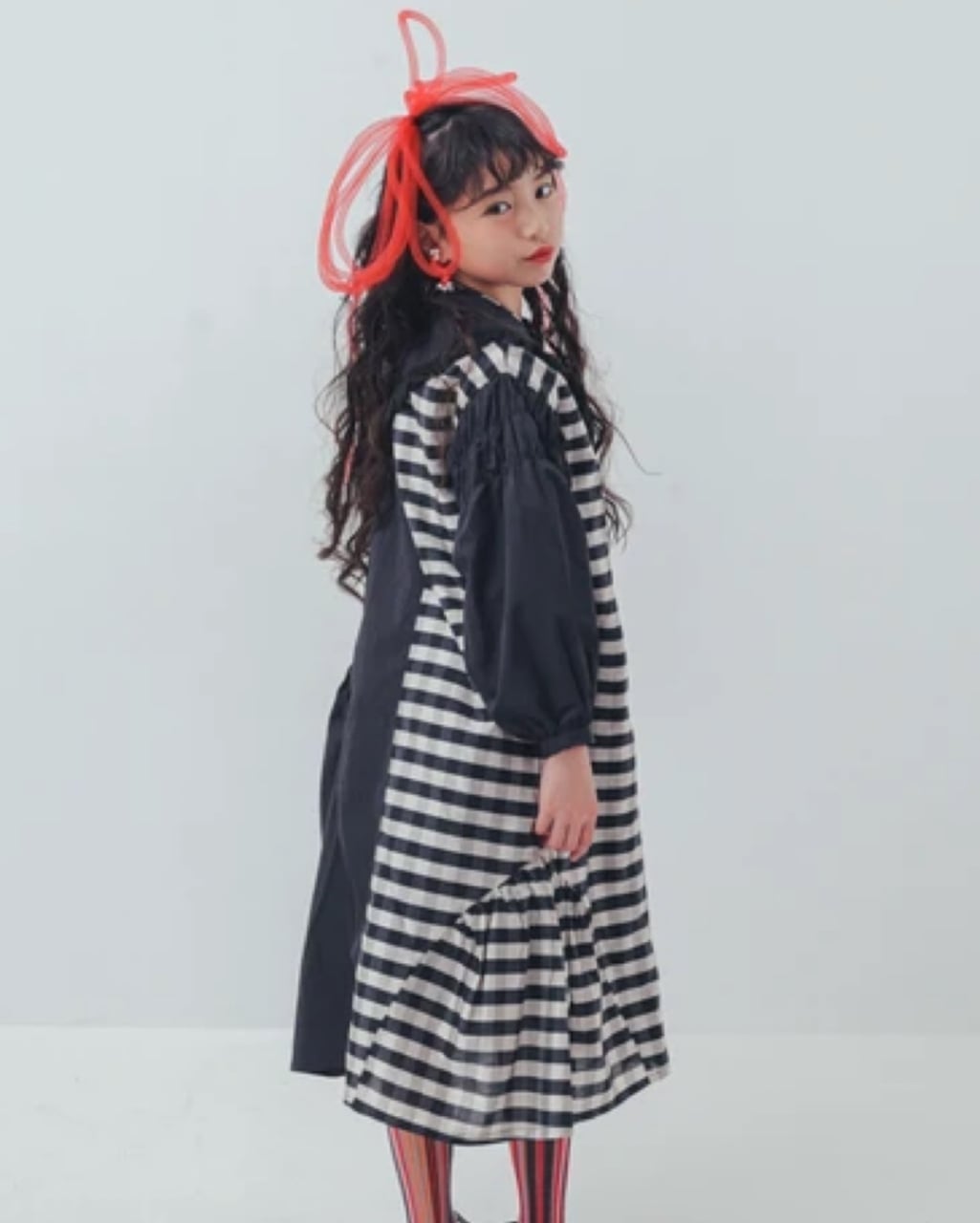存在感のあるブロックチェックが目を引く、個性派ワンピースで袖のシャーリングやV字にあしらった胸元のフリンジ、品のあるゴールドのボタンのほか、細かな切り替えがデザインに動きをもたらすことで全方位隙のない可愛さを演出! 撮影にも映えるレッドと甘さを引き締めるブラックの2色展開です。
