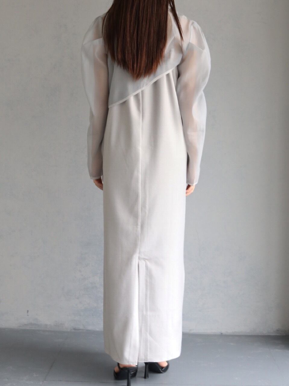 女性らしい肌見せスタイルを楽しめる上品な透け感のオーガンジーを使用。