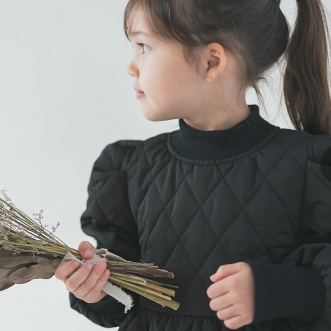 ふわっとボリュームのあるシルエットがかわいいキルティングワンピース。
