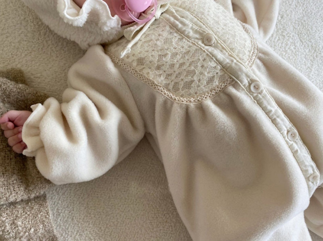 ロンパースとしても、アウター代わりにロンパースの上からでも使えます。胸部分のレースも可愛いです。