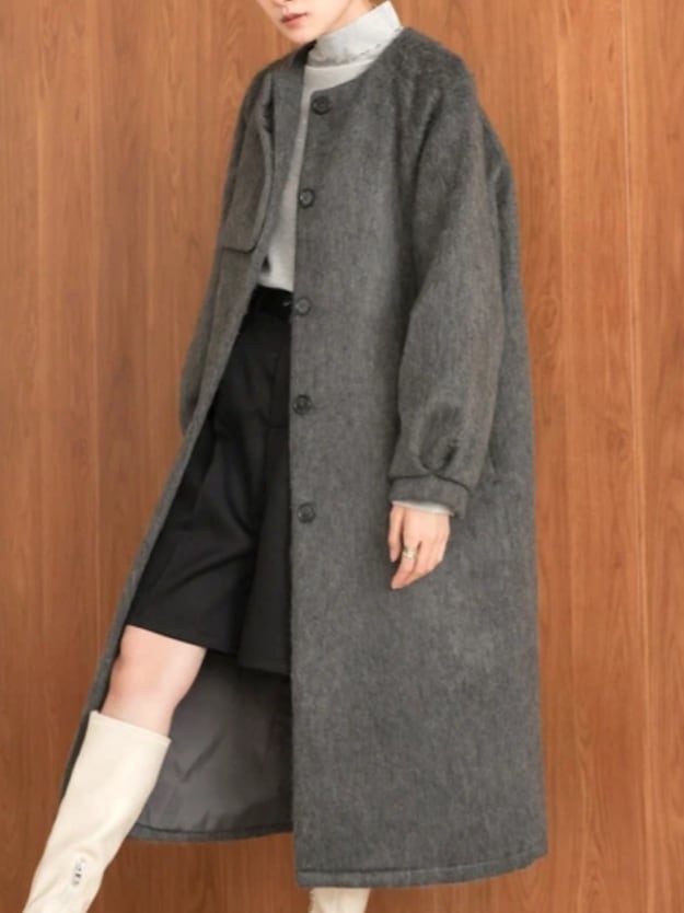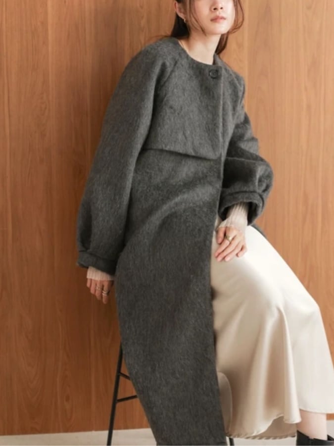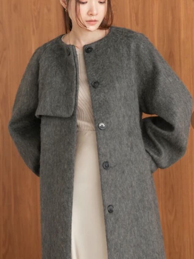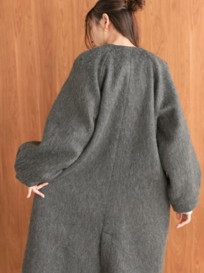 ladies シャギーノーカラーロングコート再入荷