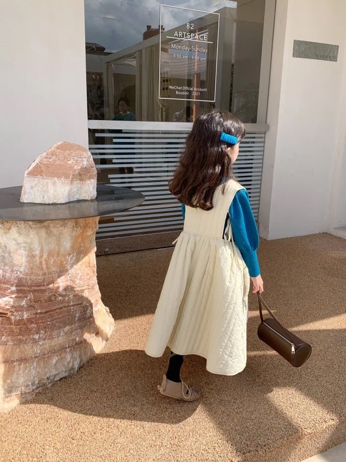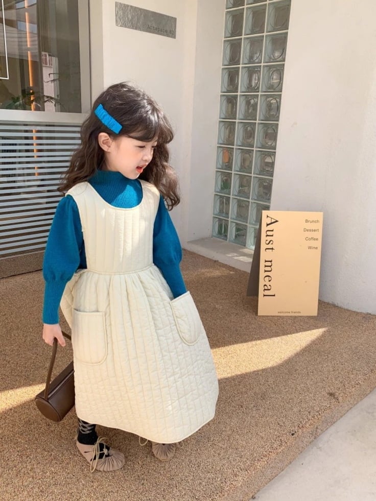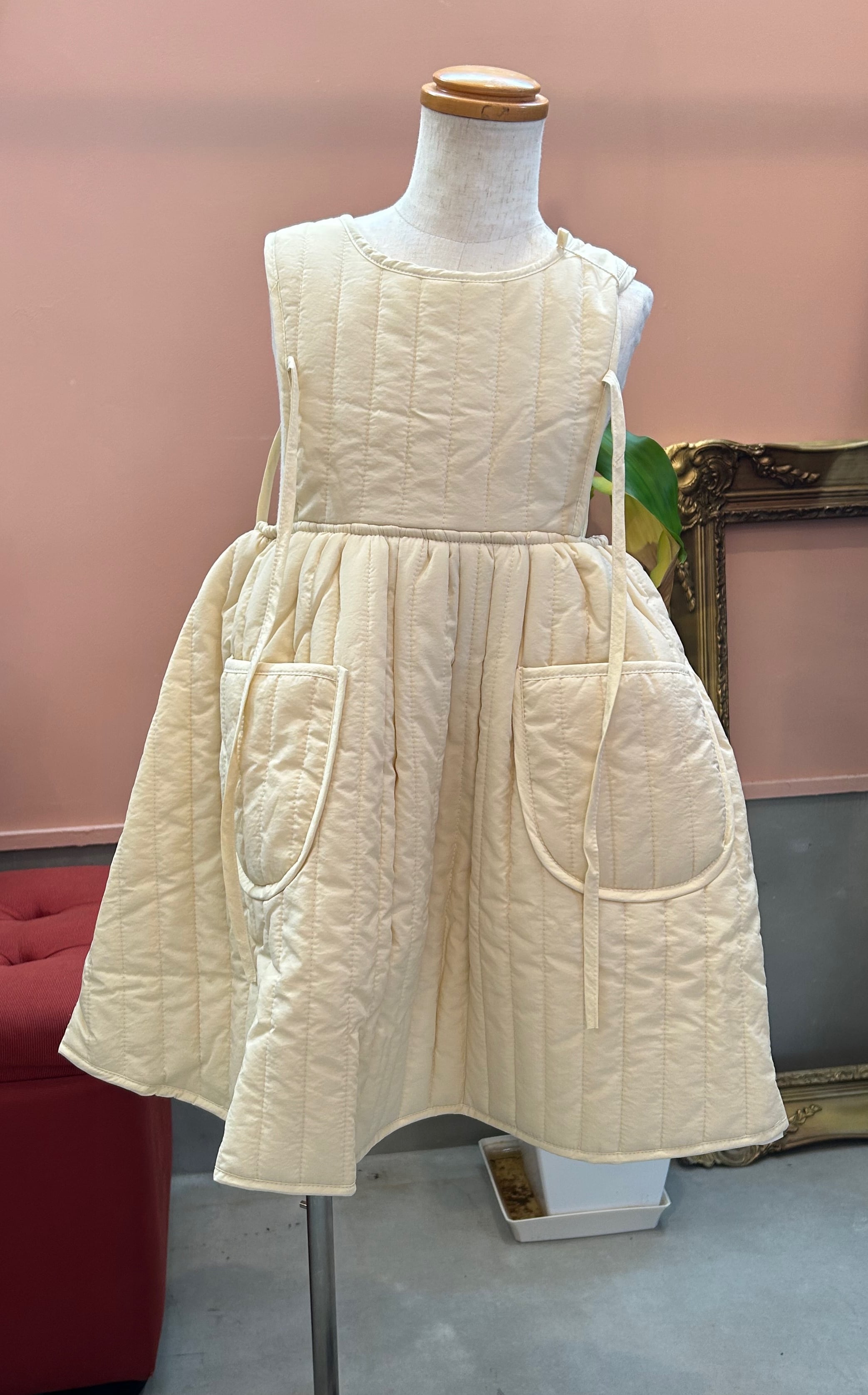 キルティング素材を使用したkids向けワンピースが登場!ウエストの切り替えデザインで、より可愛らしいシルエットを実現。ふんわりとしたスカート部分が、お子様の動きを楽しませつつ、スタイリッシュな印象を与えます。動きやすさにもこだわり、遊び回るお子様にもぴったりです。